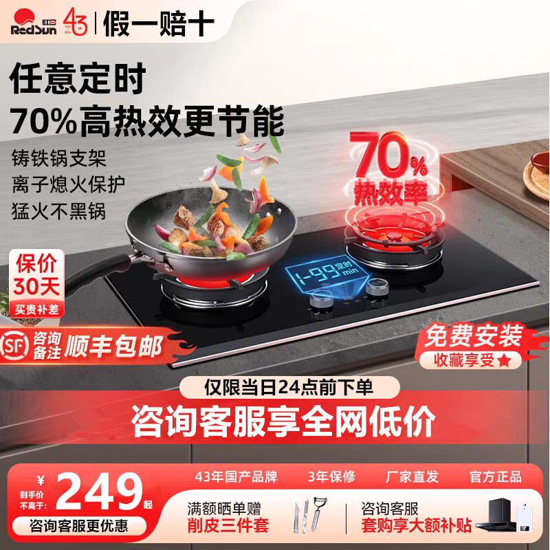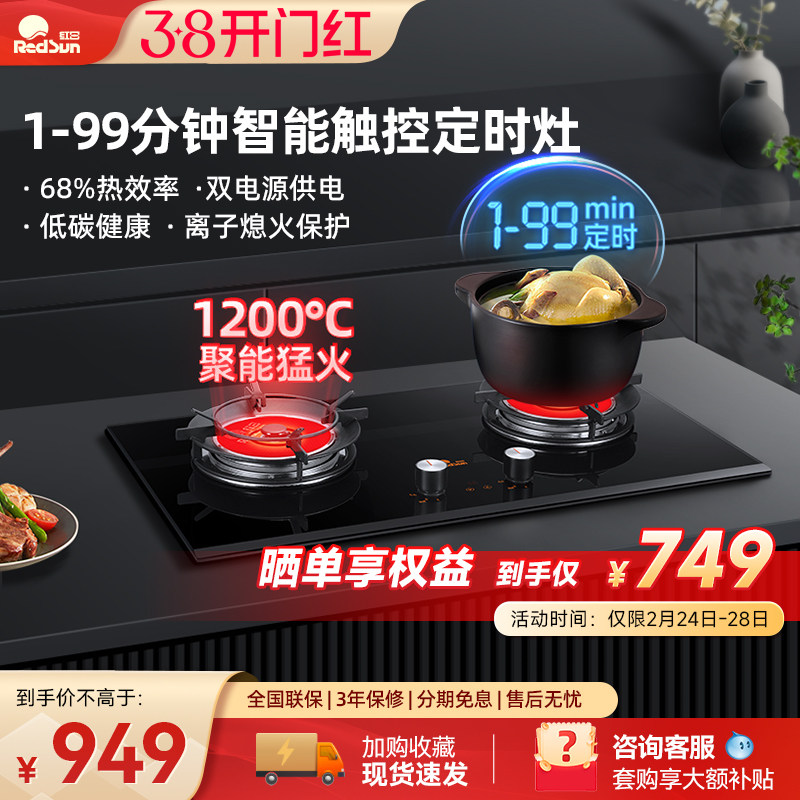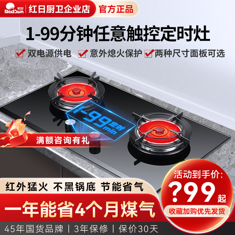 Redsun/红日红外线燃气灶家用双灶具天然气液化气灶智能定时EX26B