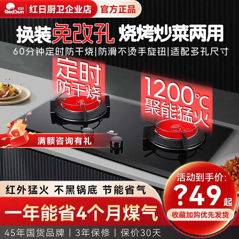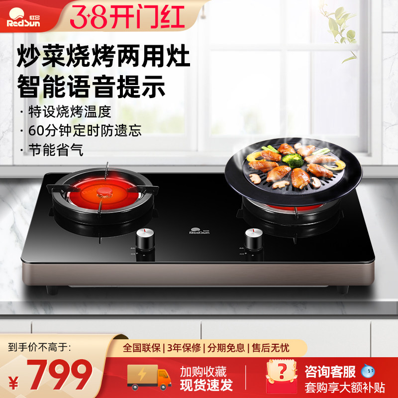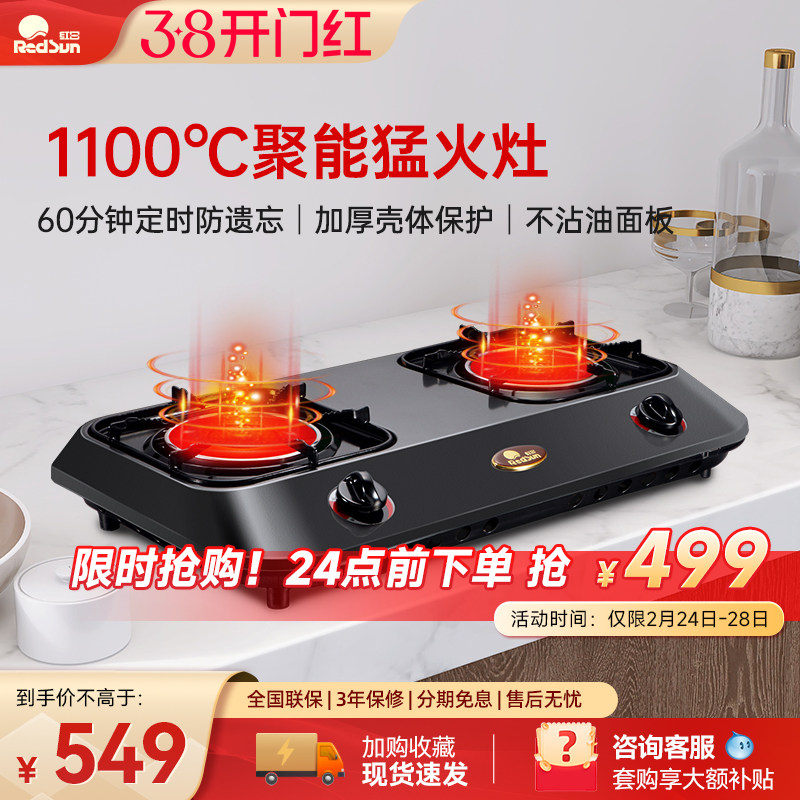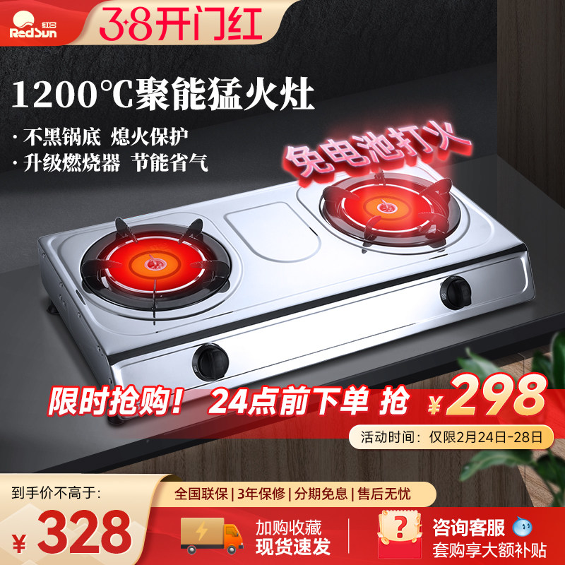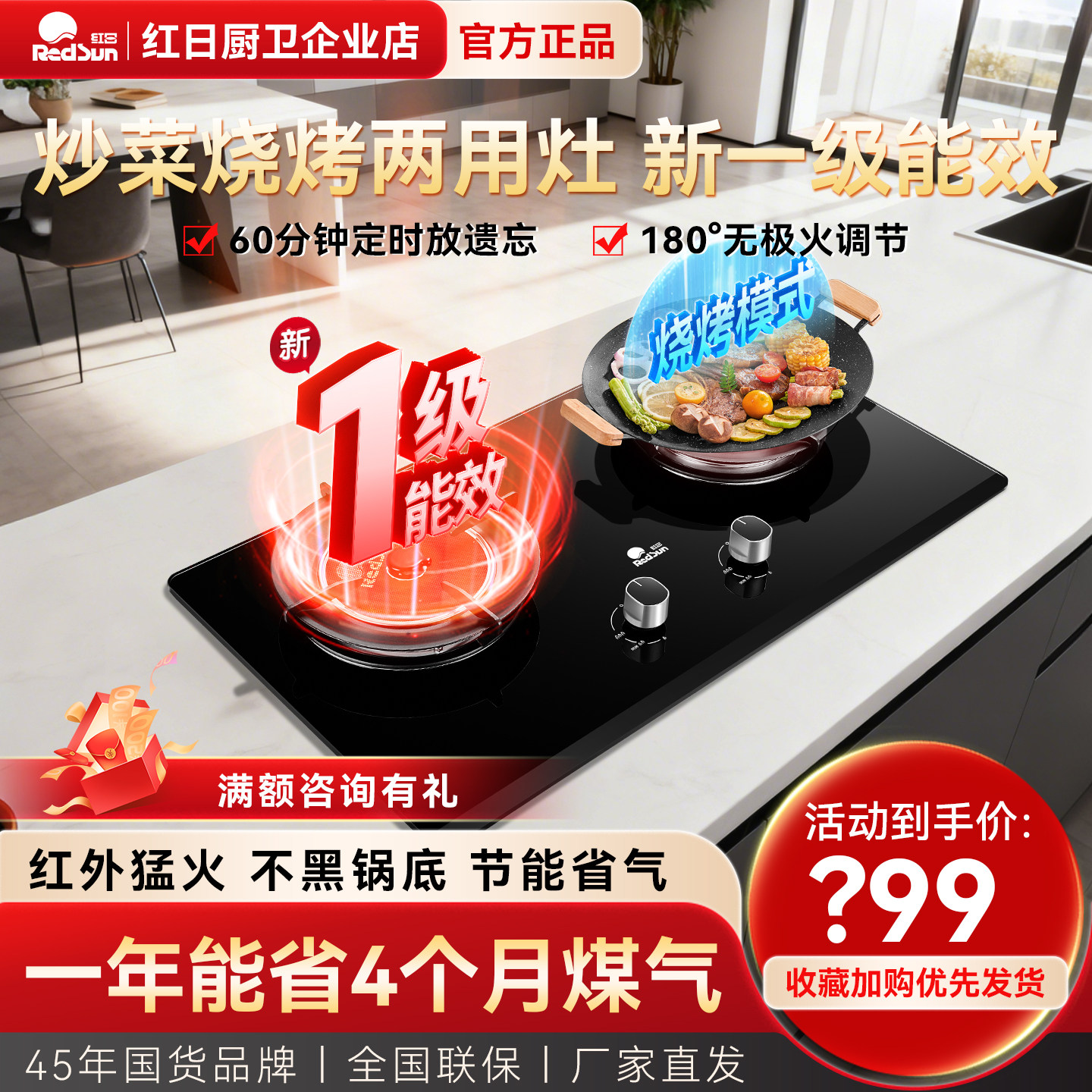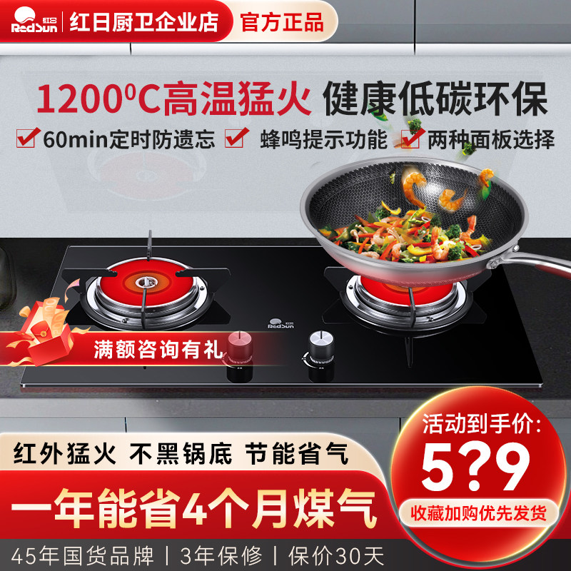 红日燃气灶煤气灶双灶台式家用猛火灶台液化气天然气炉灶具红外线