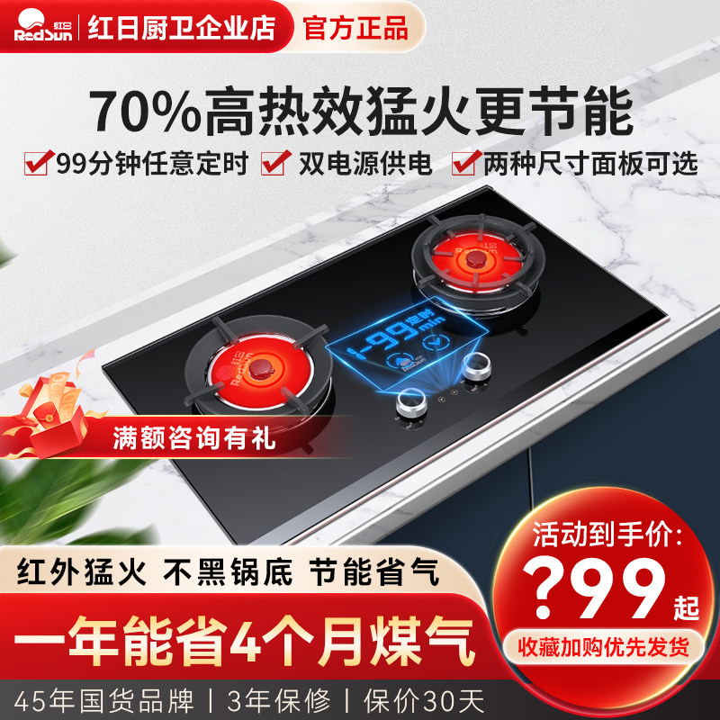 红日燃气灶煤气灶双灶家用红外线猛火灶天然气炉灶液化气炉具台嵌