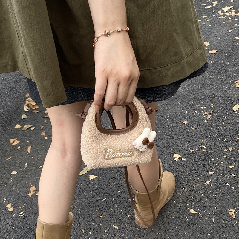 布奏毛绒毛毛包羊羔绒包包斜挎手提包小挎包白色秋冬毛绒包手提袋