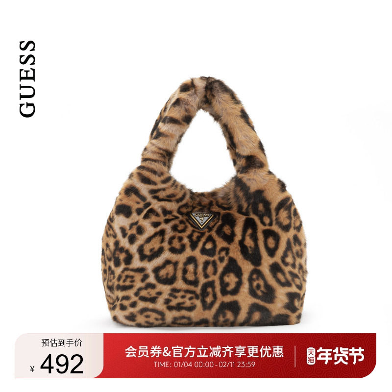 GUESS女士都市时尚潮流豹纹绒毛腋下单肩包-LB935522