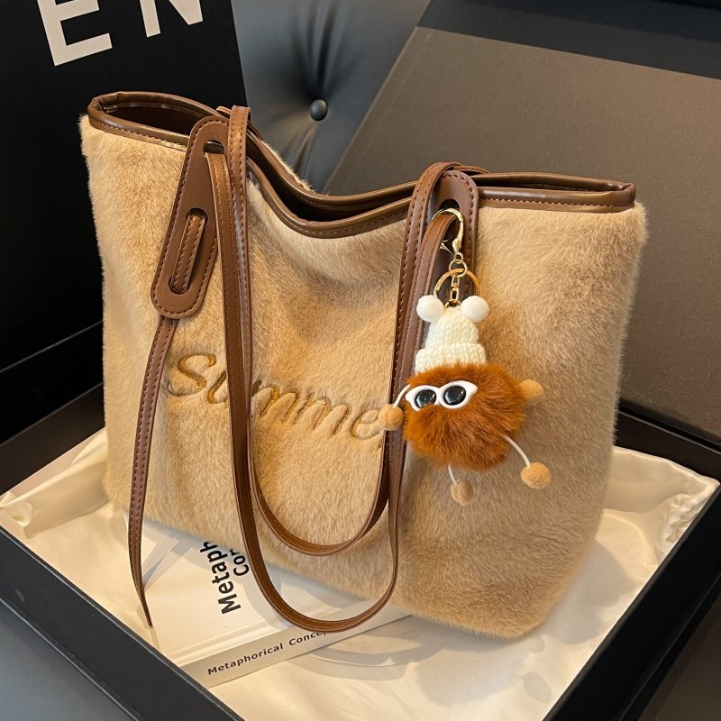 FKXGSS原创设计毛绒包包y2k托特包大容量单肩手提包绒毛大包秋冬