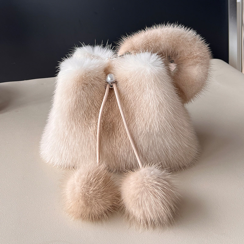 新款水貂毛小水桶包包女毛绒毛球皮草包包轻奢真毛百搭斜挎手拎包