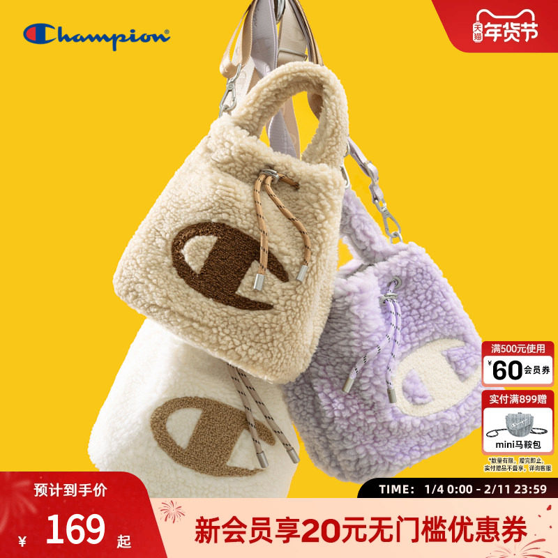 Champion冠军单肩包冬纯色刺绣仿羊羔绒毛绒冬季挎包小肩包女