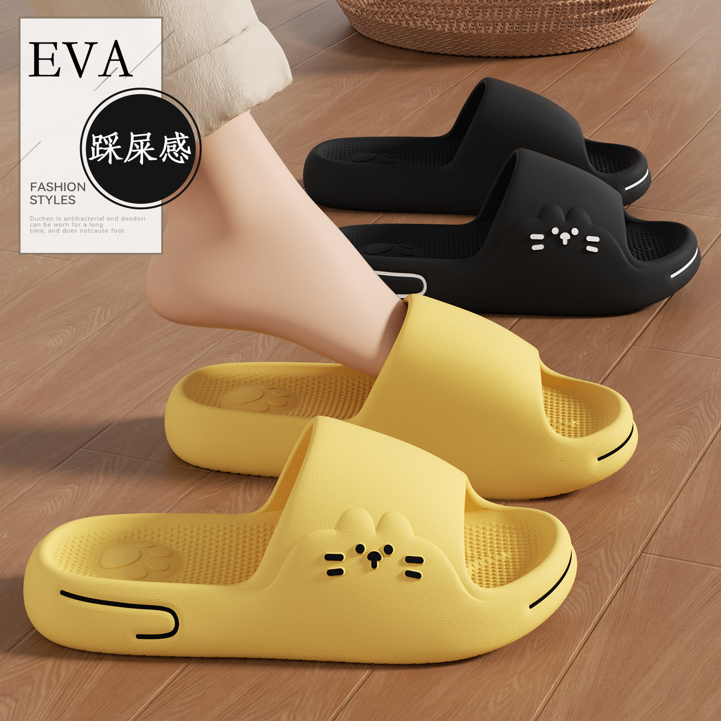 拖鞋女士夏季室内家居防滑静音eva浴室厚底踩屎感猫咪凉拖外穿男