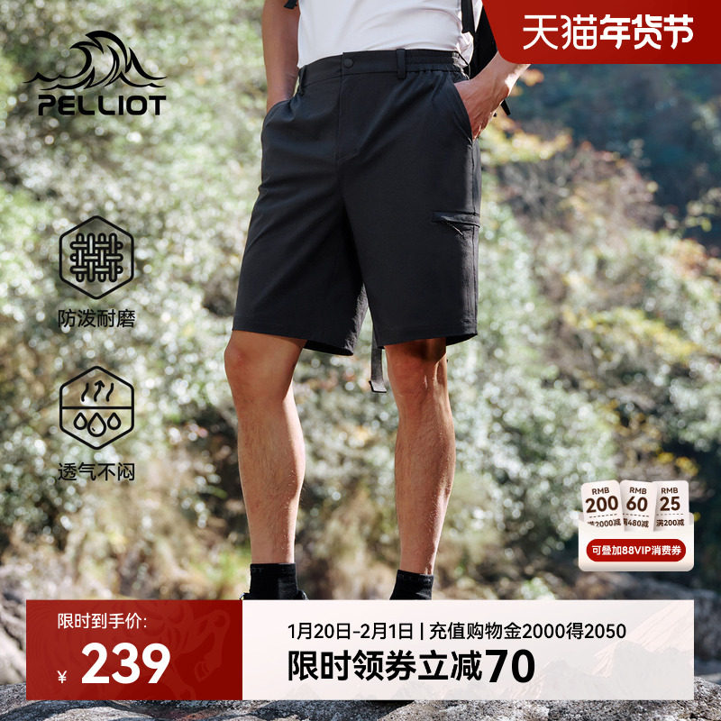 伯希和户外快干裤男防泼耐磨徒步登山运动短裤吸汗透气休闲五分裤