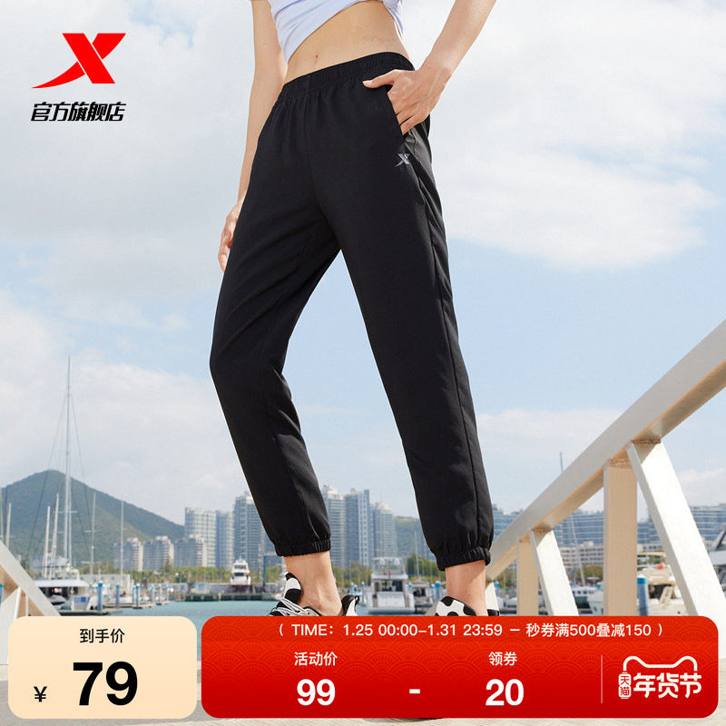 特步运动裤女2026夏季梭织快干跑步裤子官方网店正品薄款小脚女裤