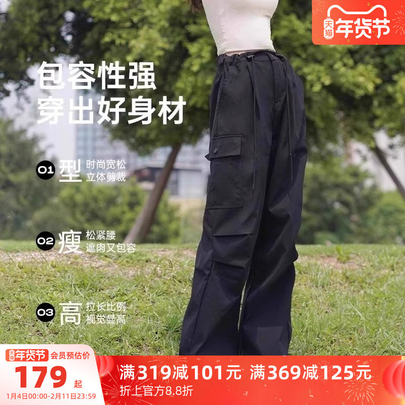 [迪丽热巴同款]骆驼户外快干伞兵裤女阔腿宽松高腰透气直筒工装裤