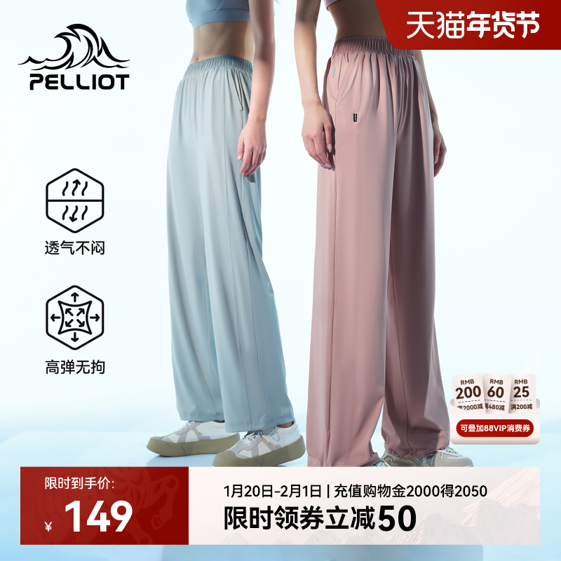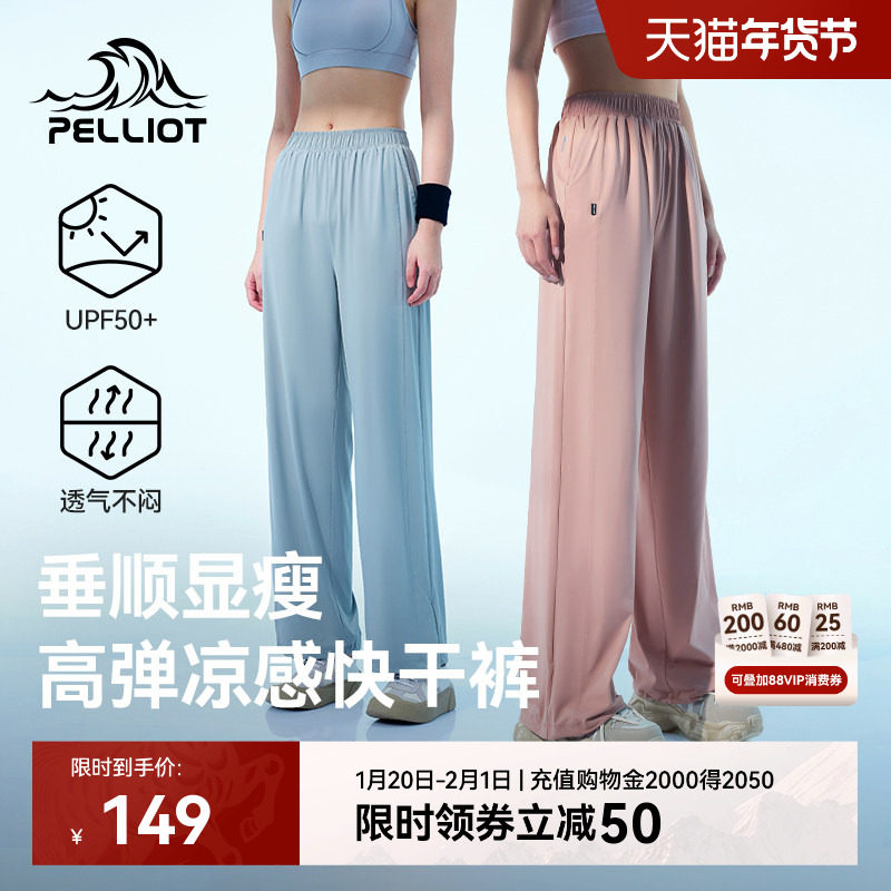 伯希和户外快干裤女款防晒阔腿裤垂感透气休闲长裤高弹舒适运动裤