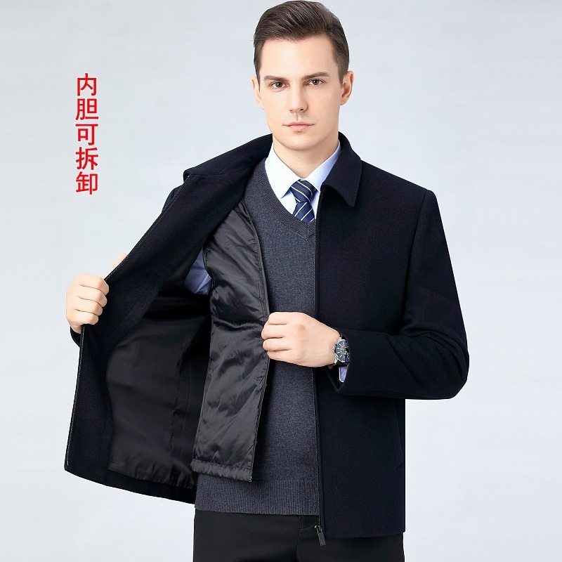 2024纯羊毛呢子大衣中青年男士秋冬新款羊绒短款加厚羽绒内胆外套