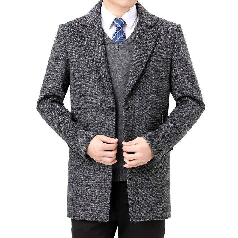 呢面呢子大衣男羊绒大衣短款双西装领秋冬加厚SGQ夹克中青年毛外