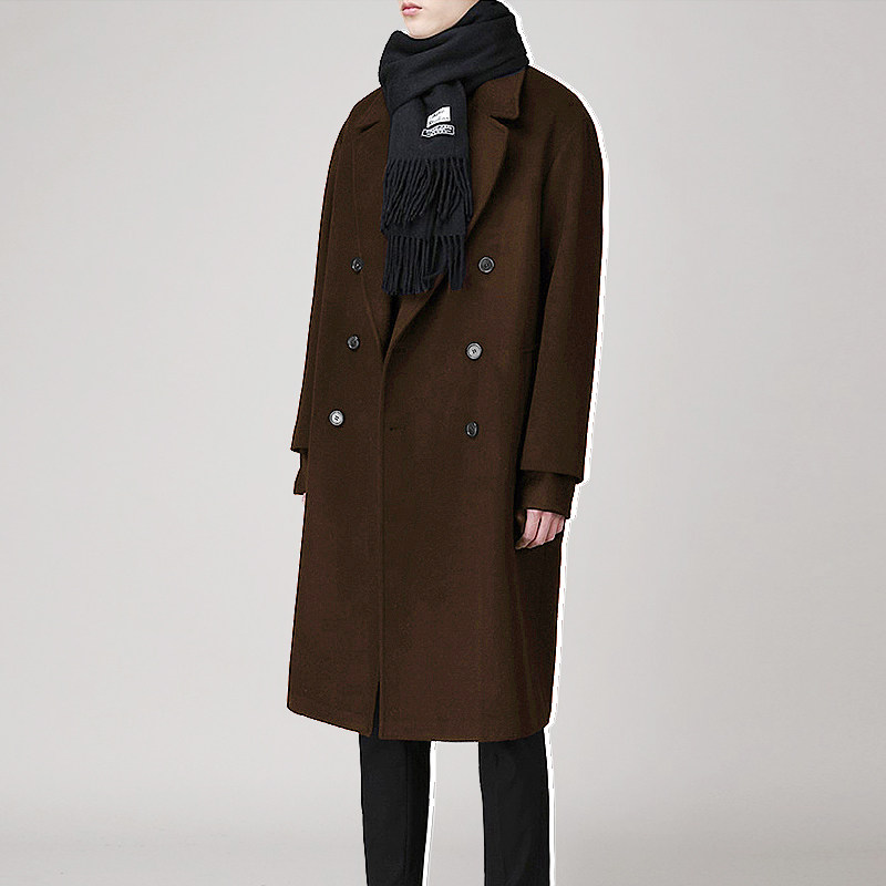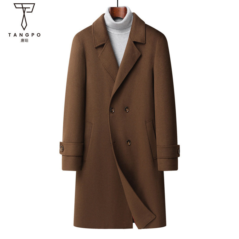 秋冬羊毛落肩双排扣大衣双面羊绒大衣男长款合体休闲青年毛呢外套