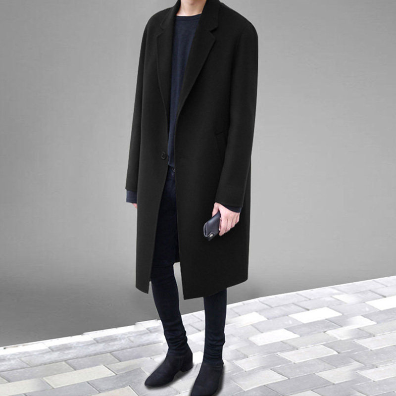 冬季韩版男士落肩毛呢大衣中长款青年双面羊绒风衣男加厚呢子外套