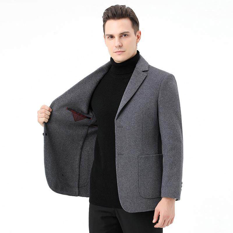 秋冬款毛呢大衣男中短款羊绒外套双面呢子加厚西装领青年羊毛夹克