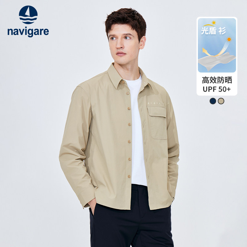 [防晒]Navigare意大利小帆船卡其色休闲衬衫外套男长袖工装衬衣