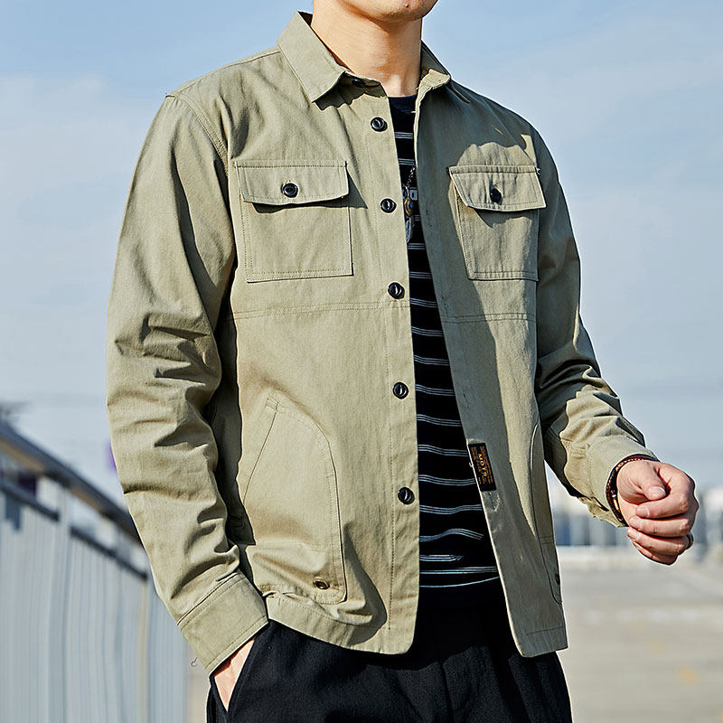 2024新款美式工装复古棉籽壳工装衬衫外套男长袖休闲叠穿衬衣春秋