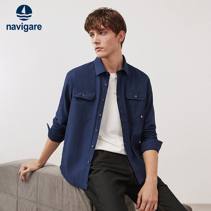 [纯棉]Navigare意大利小帆船春季蓝色衬衫外套男长袖新款休闲衬衣
