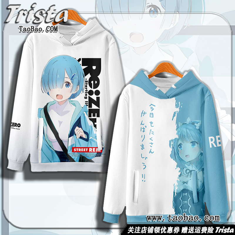 从零开始的异世界生活周边衣服RE0蕾姆 拉姆痛衣冬装男连帽卫衣潮