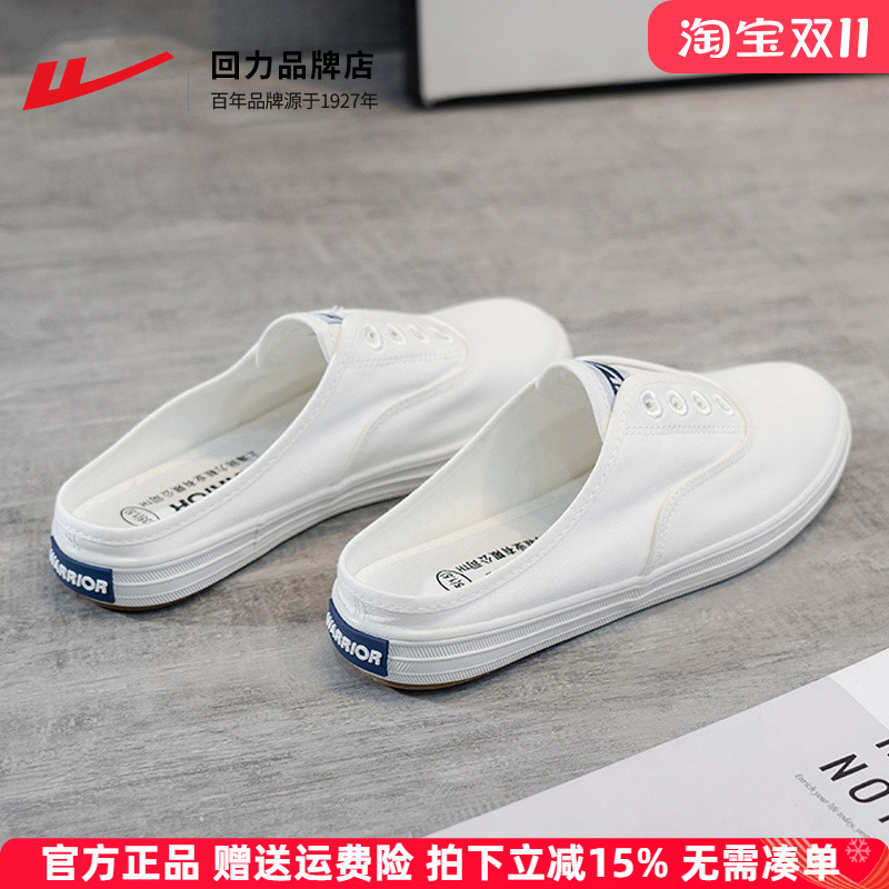 回力女鞋2025夏季新款包头半拖帆布鞋一脚蹬轻便舒适懒人鞋小白鞋