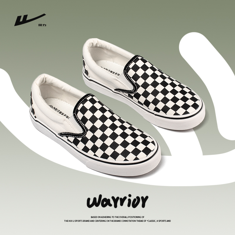 回力休闲鞋一脚蹬男女鞋黑白棋盘格新品夏季懒人鞋黑白格子帆布鞋