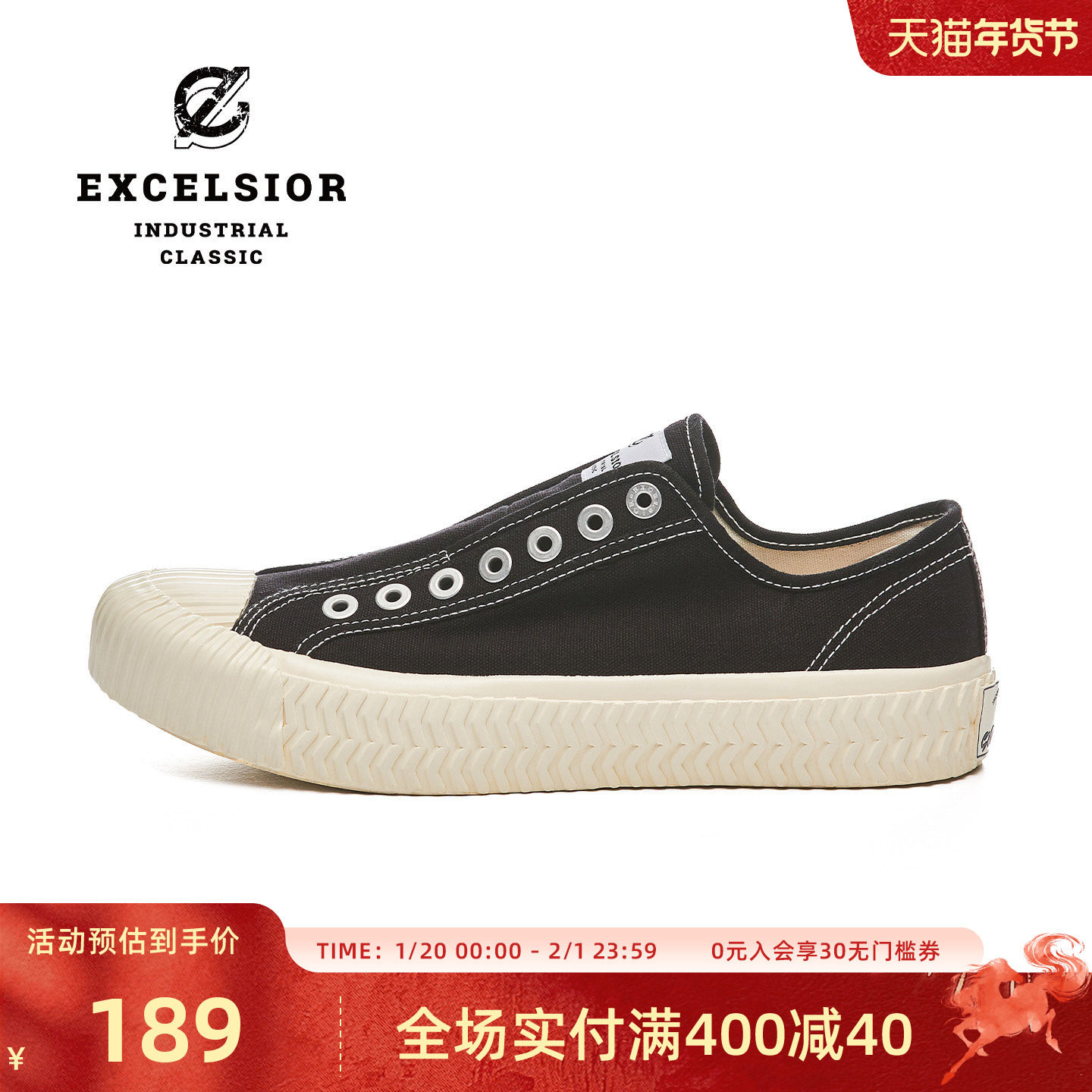 excelsior饼干鞋官方 增高厚底懒人鞋女黑色低帮一脚蹬帆布鞋男
