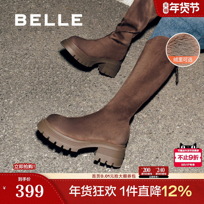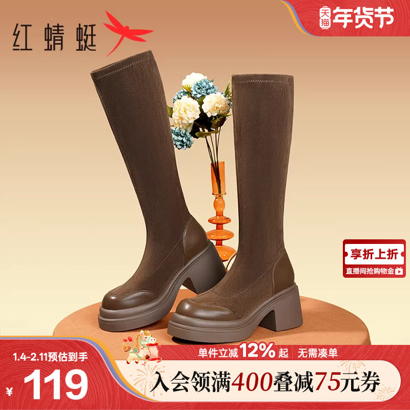 - 粗跟过膝长靴长筒靴