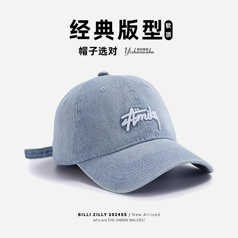 日系ins潮字母水洗牛仔布棒球帽男女春夏季休闲百搭遮阳鸭舌帽子