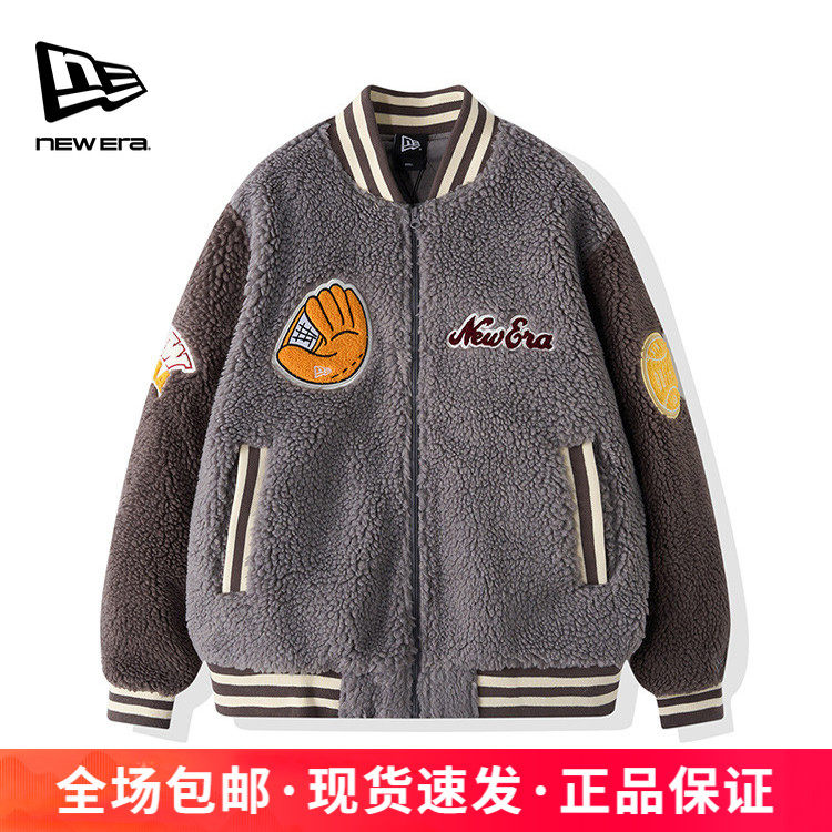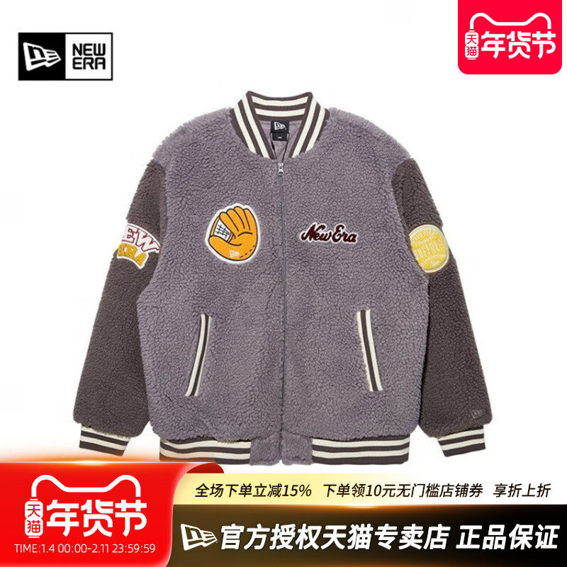 NewEra纽亦华秋冬男女款夹棉保暖潮仿羊羔绒厚棒球衫外套13488914