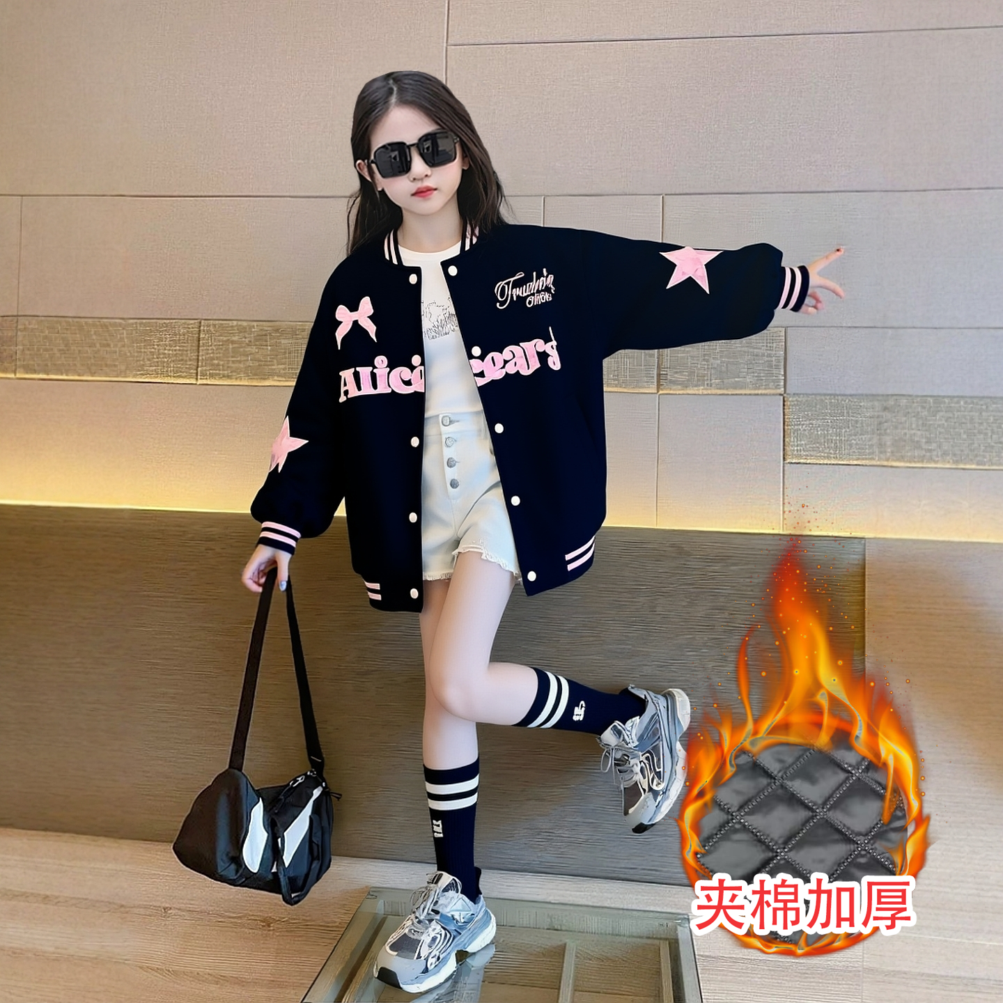 NEXT JANSO女童棒球服外套加厚秋冬宽松拉链开衫夹克洋气休闲上衣