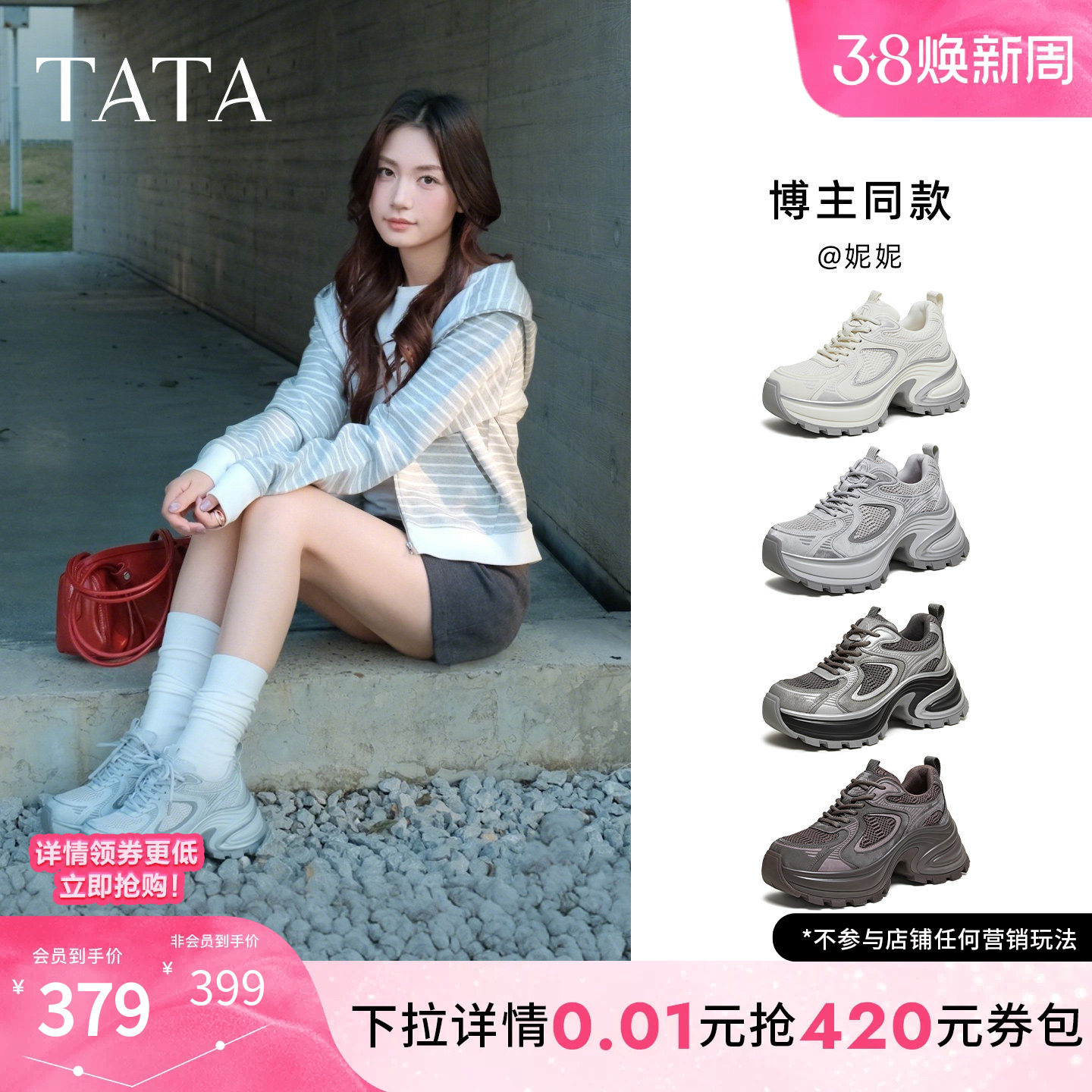 TATA他她女鞋2026春季休闲鞋运动鞋百搭厚底增高老爹鞋透气跑步鞋