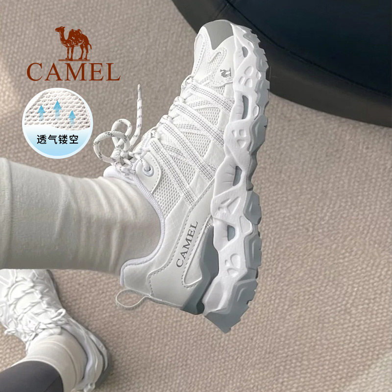 骆驼漫游女鞋2026春季透气慢跑小白鞋运动跑步登山板鞋休闲老爹鞋