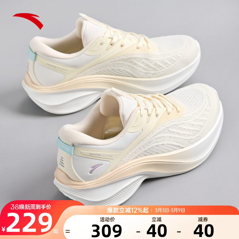安踏飞驰运动鞋女鞋春季皮面新款网面透气休闲轻便体测学生跑步鞋