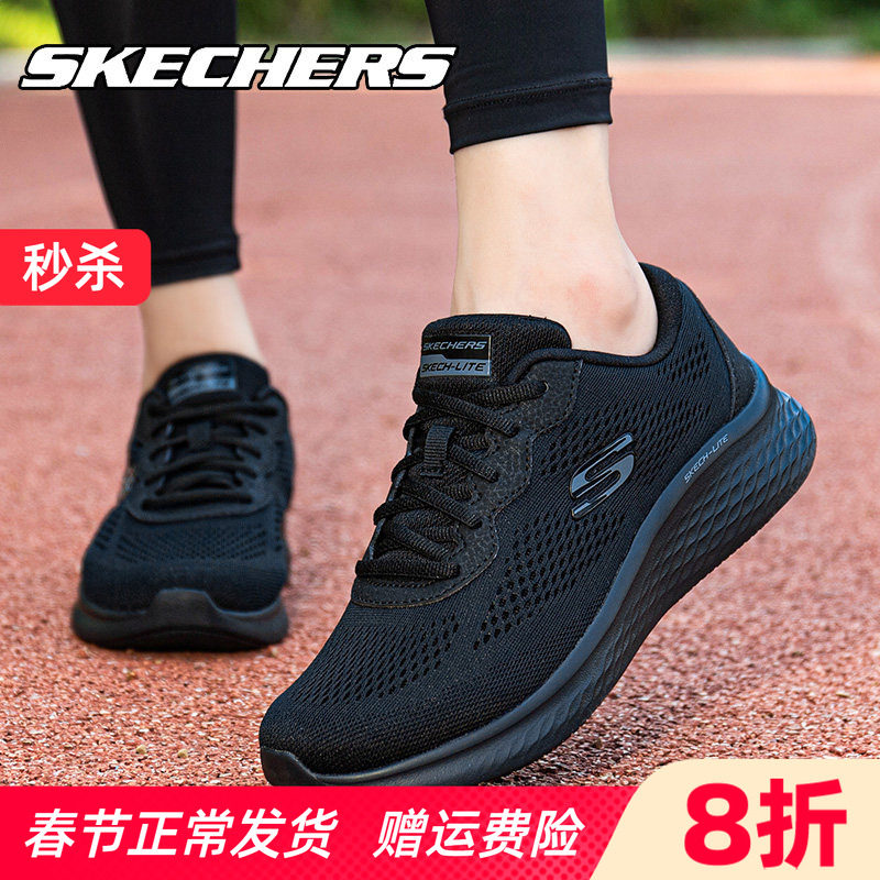 Skechers斯凯奇女鞋跑步鞋春季官方旗舰网面透气黑色休闲运动鞋女