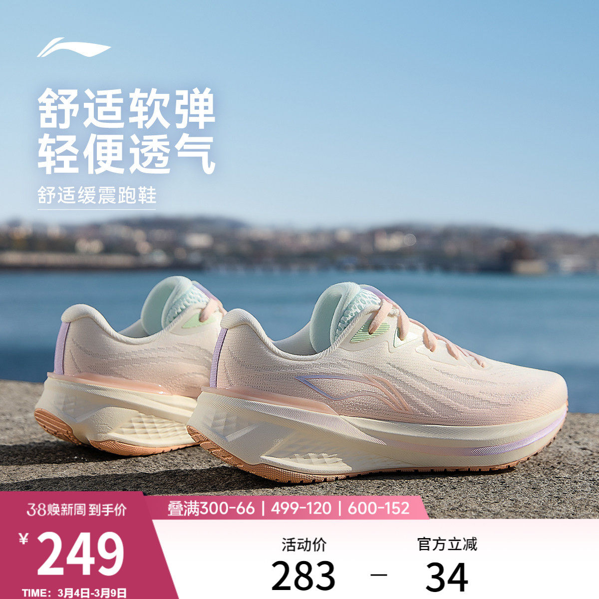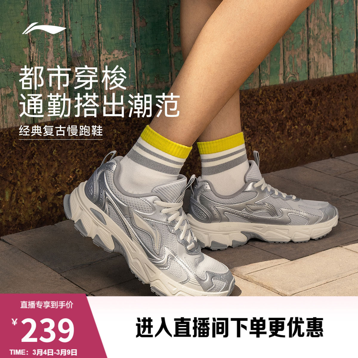 李宁逍遥v2丨跑步鞋女鞋新款轻便透气减震复古百搭软底休闲运动鞋