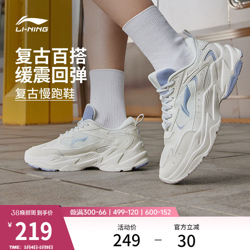 李宁启星丨 跑步鞋女鞋减震跑鞋透气运动鞋女软底复古休闲老爹鞋