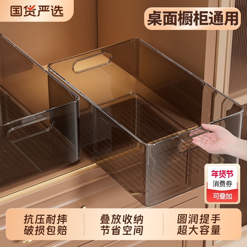 橱柜收纳盒桌面亚克力长方形零食小杂物厨房玄关整理储置物筐盒子