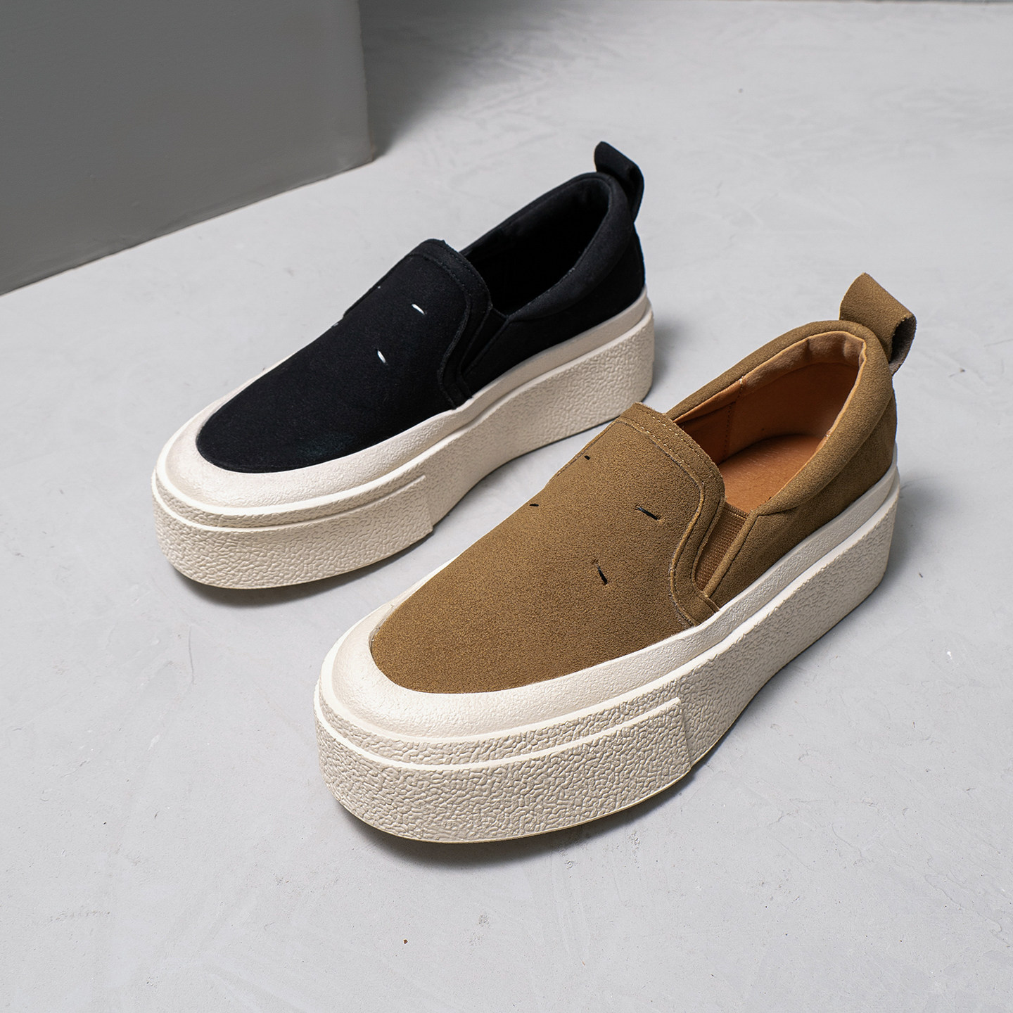 厚底一脚蹬乐福鞋女2026春季新款真皮圆头增高松糕懒人鞋百搭单鞋