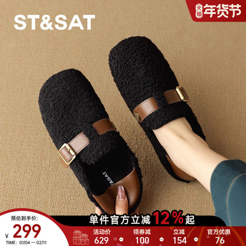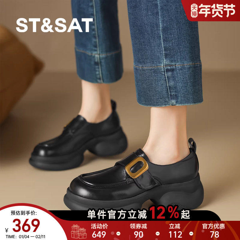 星期六厚底乐福鞋女款2025年冬季新款一脚蹬懒人英伦风圆头小皮鞋