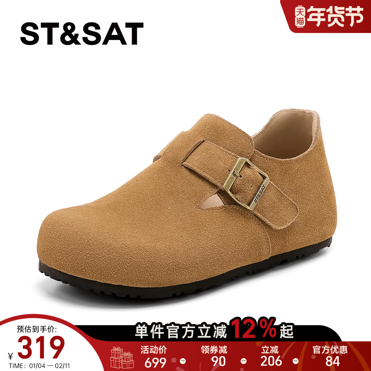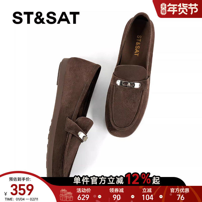 星期六绒面乐福鞋女2025圆头金属扣平底单鞋英伦一脚蹬软底懒人鞋