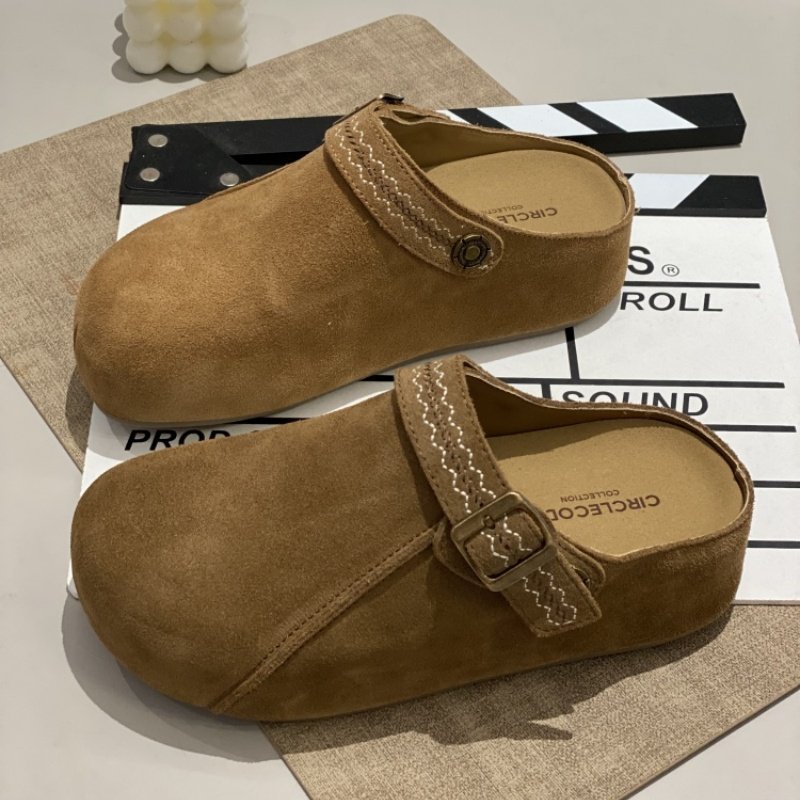 厚底复古增高包头勃肯拖鞋女秋冬新款圆头懒人一脚蹬穆勒休闲半拖