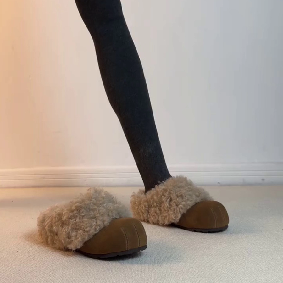 日本Angelcocoa加绒圆头博肯鞋女一脚蹬单鞋懒人毛毛鞋