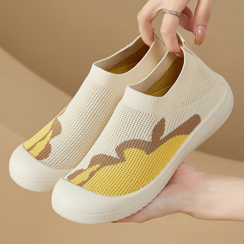 秋季一脚蹬透气薄款圆头飞织布鞋女软底舒适妈妈鞋时尚百搭懒人鞋