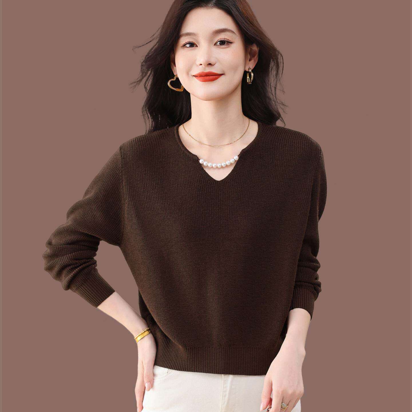 - 白色打底衫女长袖 v领