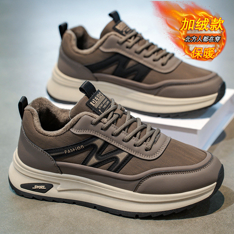 莆田男鞋2025新款冬季加绒棉鞋百搭运动休闲户外男士厚底阿甘潮鞋