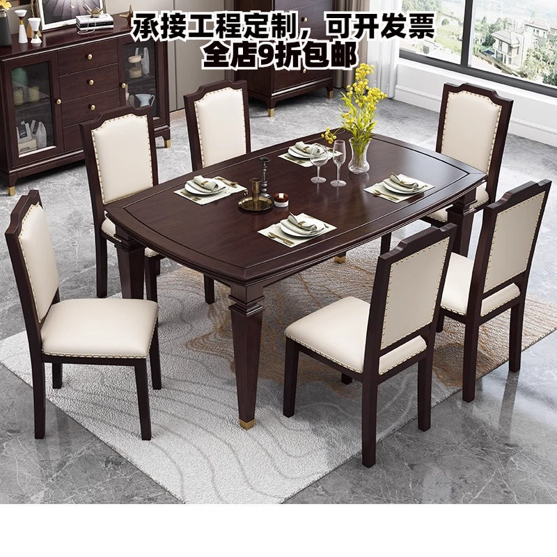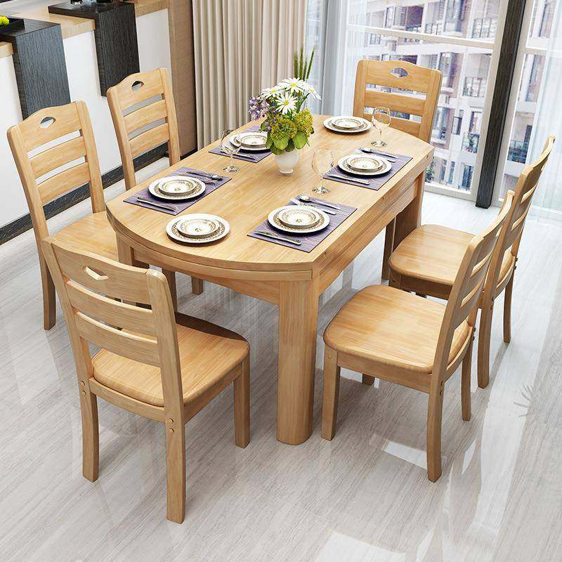 - 全实木餐桌椅组合 可伸缩