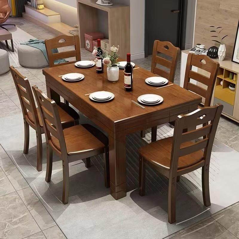 - 实木餐桌椅组合可伸缩