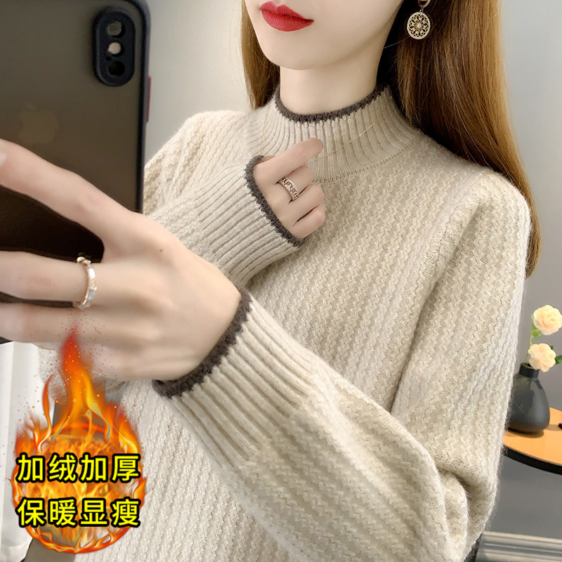 毛衣女款2025新款冬季宽松慵懒风加绒加厚内搭半高领打底衫女秋冬