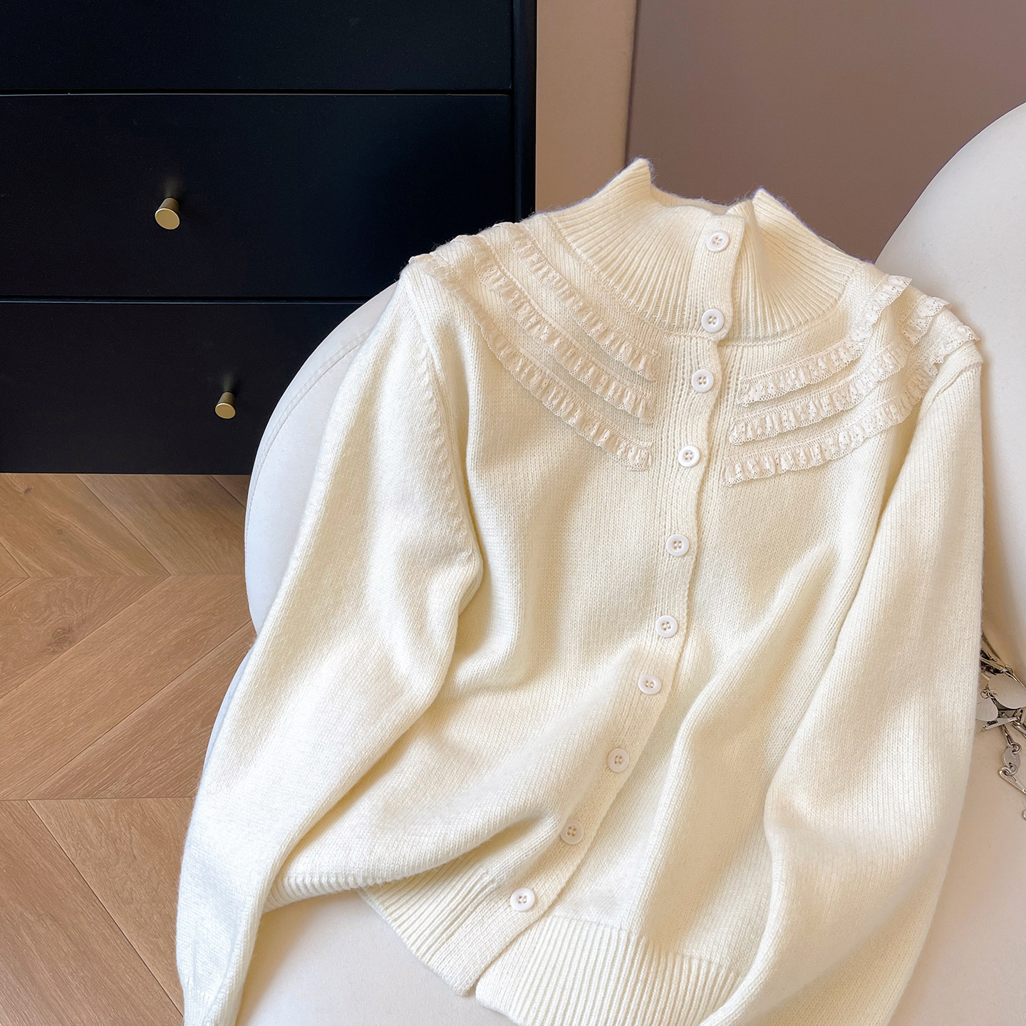 小C家 半高领毛衣女款2025新款冬季软糯针织开衫木耳花边别致上衣
