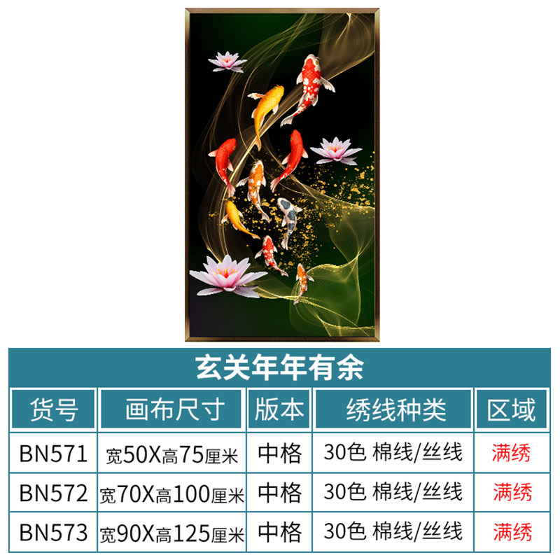 2021新款十字绣鱼玄关年年有余九鱼图竖版客厅线绣自己绣手工大气