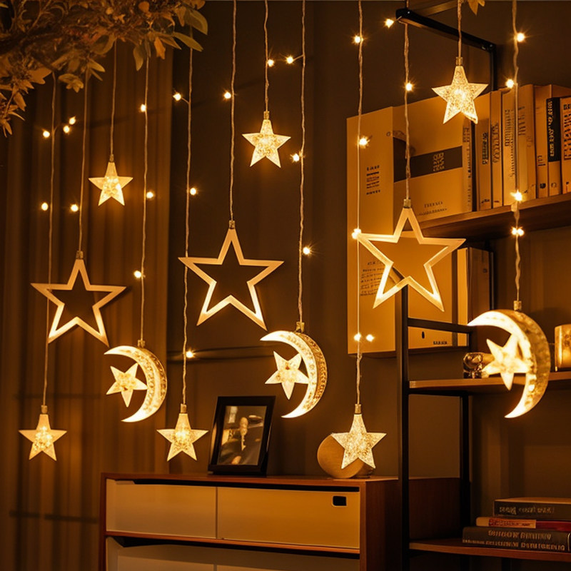 星星月亮灯窗帘灯LED彩灯闪灯串灯 ins网红少女卧室房间婚庆装饰
